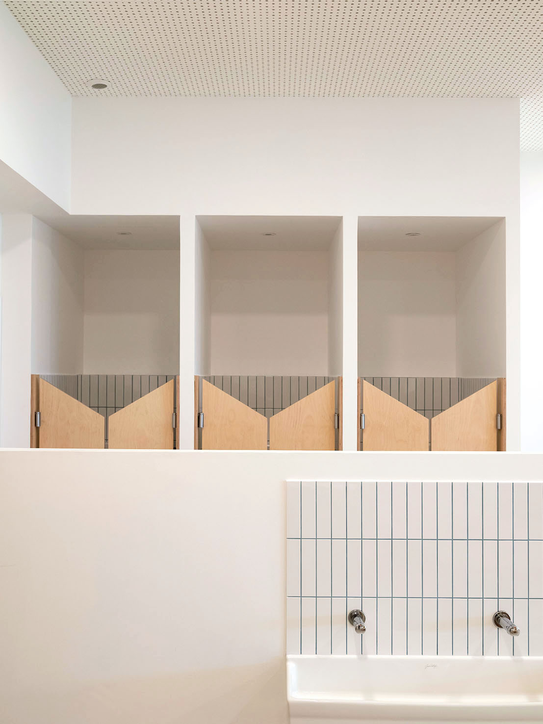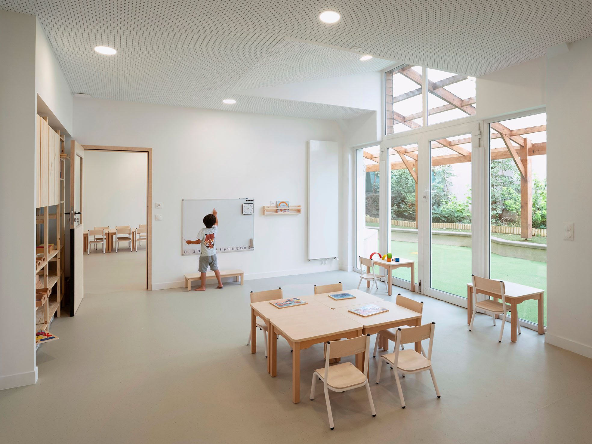 Un travail sur la fonctionnalité et l’ergonomie des espaces, sur la qualité des matériaux et sur la mise au point d’un mobilier adapté ont permis de créer une école fonctionnelle et agréable à vivre pour les enfants et les professionnels.